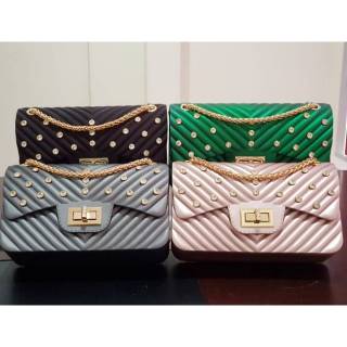 TAS SELEMPANG WANITA IMPORT JELLY MATTE BEHEL STUD