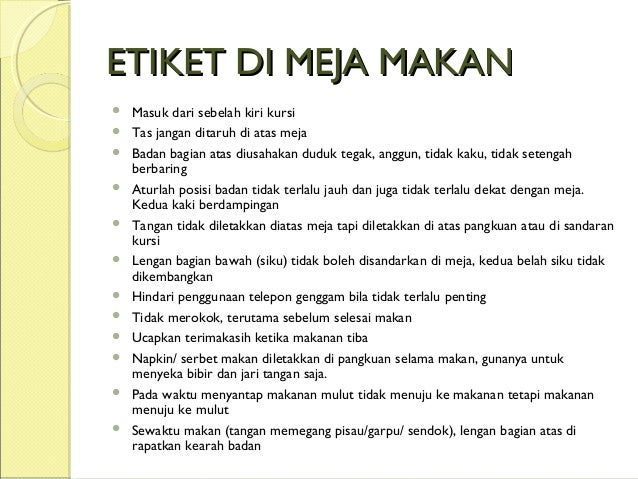 Etiket jamuan makan resmi . Sumber Gambar : www.slideshare.net