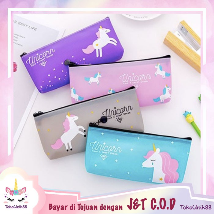 TU88 Tempat Pensil Unicorn Bahan Silikon Gliter Pencil Sumber : shopee.co.id